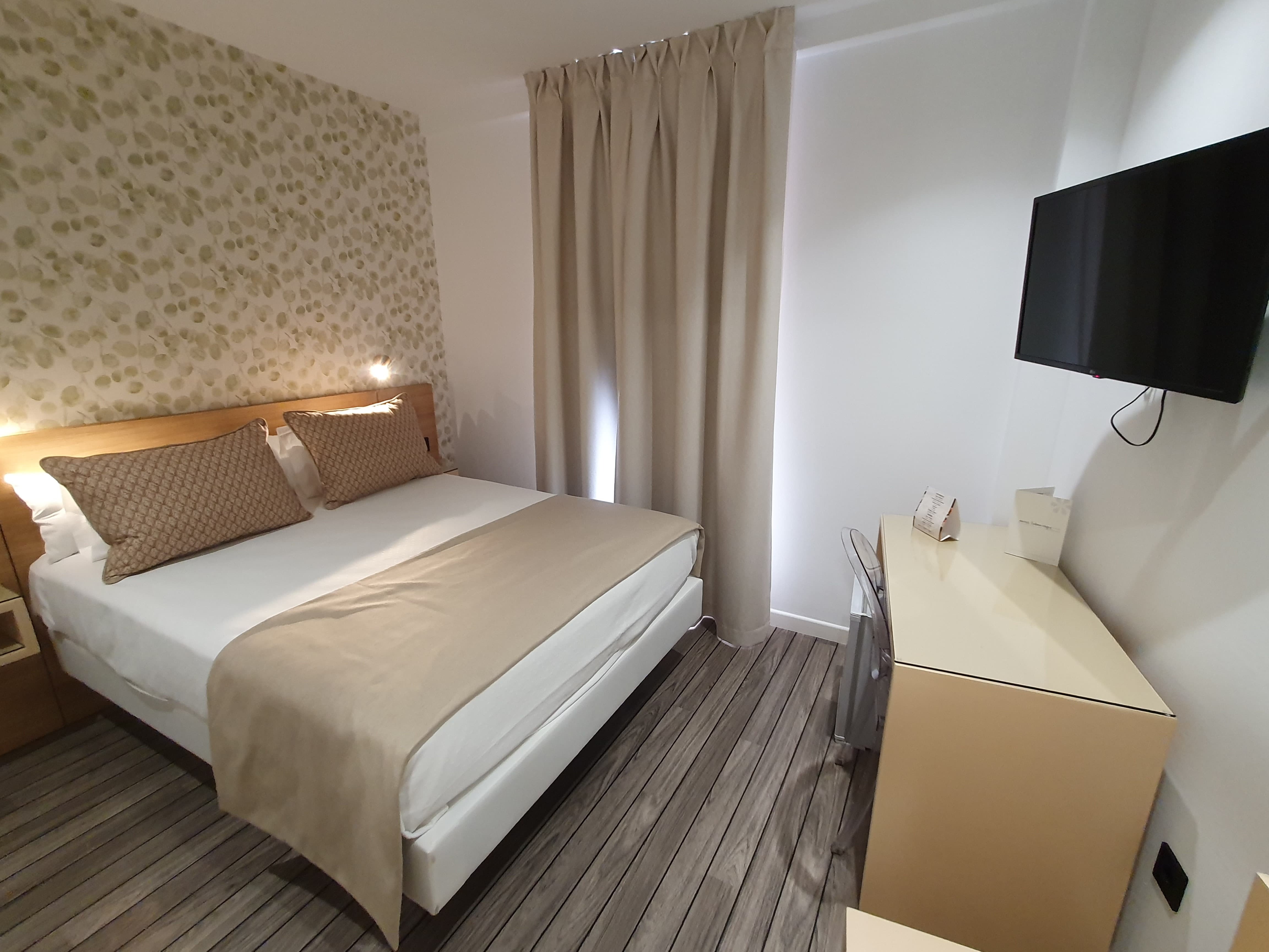 Habitación pensada para su viaje, funcional y con armario visto. Compuesta por camas de matrimonio de 150 cm. En este tipo de habitaciones, no se pueden añadir ni cunas ni camas supletorias.